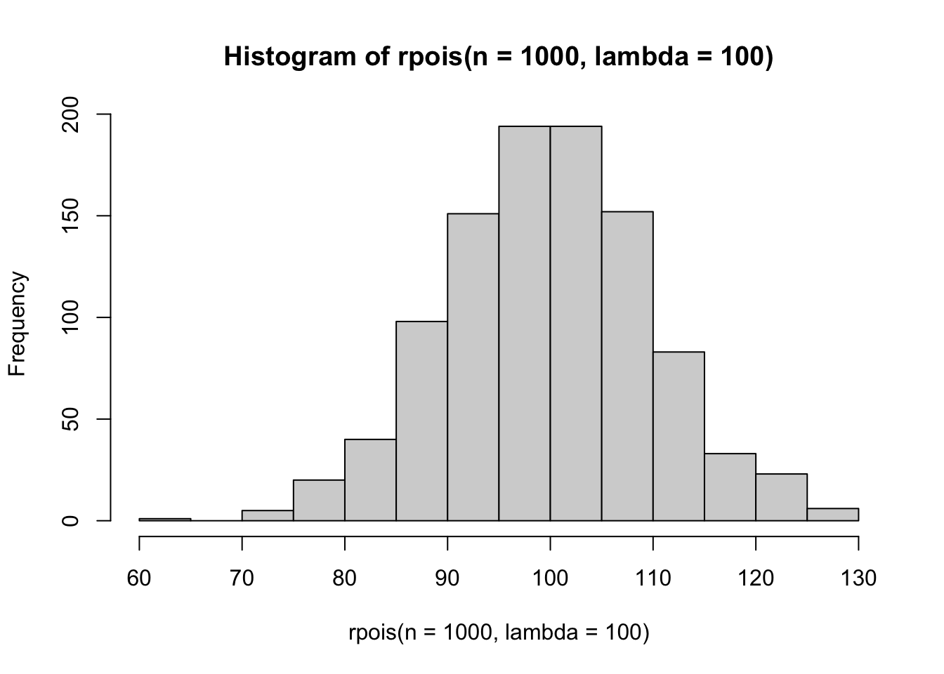 hist(rpois(n =1000, lambda =100))